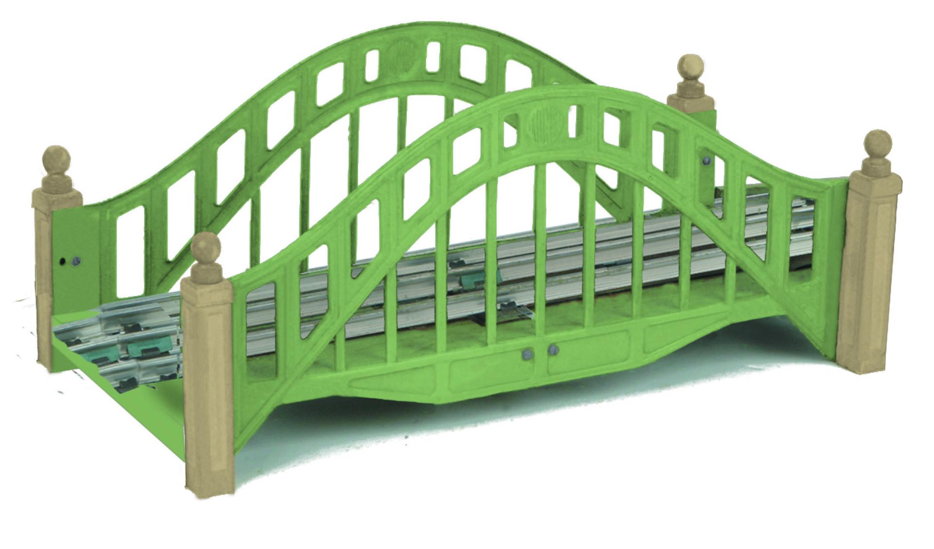 Each bridge is constructed from stamped metal components and features the bright enamal finish that makes tinplate magical and exciting. Easily integrated with standard gauge and O gauge track components, the bridge comes fully assembled and ready-to-use. Pair one or more with the #104/#100 Bridge Ramp set for an even more interesting configuration.