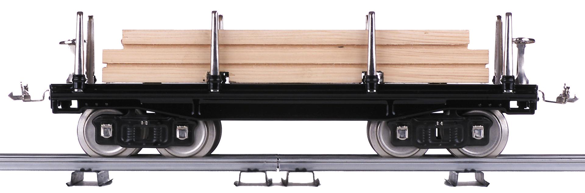 Black w/Brass Std. Gauge Lionel Corporation Tinplate No. 211 Std. Gauge Flat Car w/Wood Load