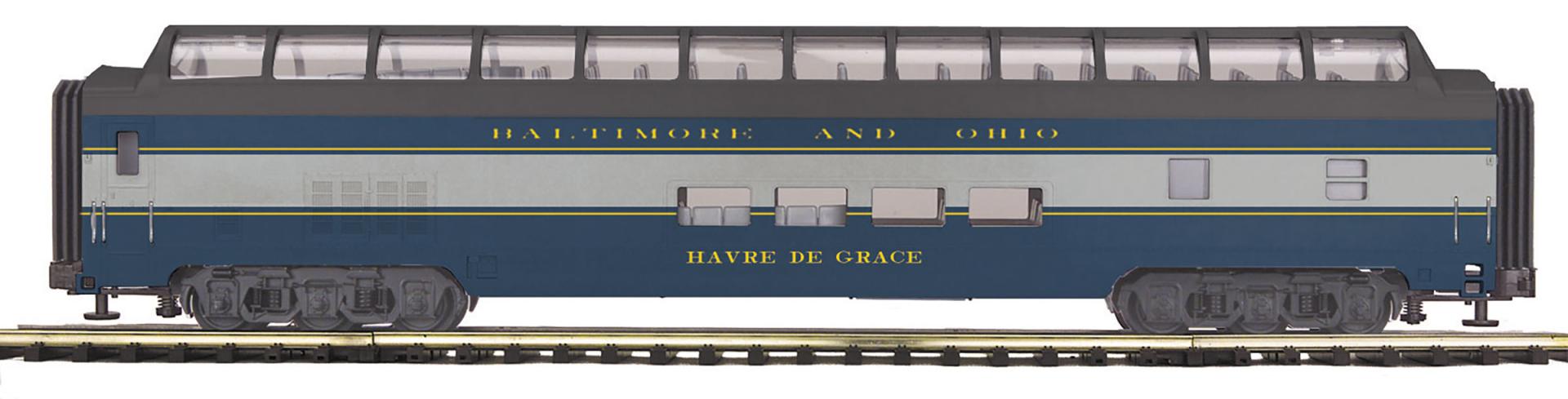 Baltimore & Ohio O Scale Premier 70' Streamlined Full Length Vista Dome Passenger Car (Smooth Sided)
