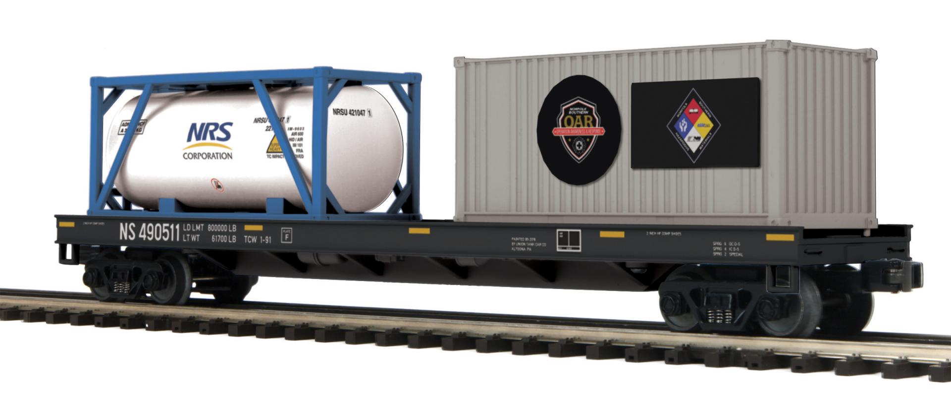 Norfolk Southern O Scale Premier Flat Car w/Tank Container & 20' Container