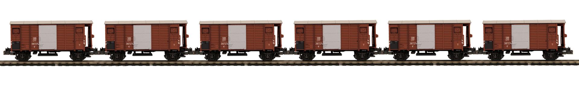SBB-CFF 6-Car European Gedeckter Guterwagen/Box Car Set (Scale Wheels)