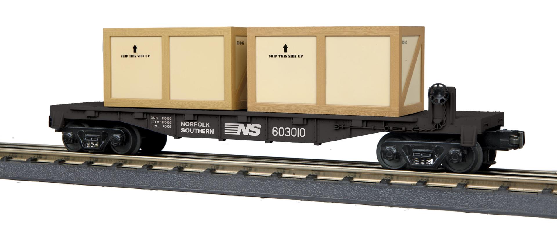 Norfolk Southern O Gauge RailKing Flat Car w/(2) Crates