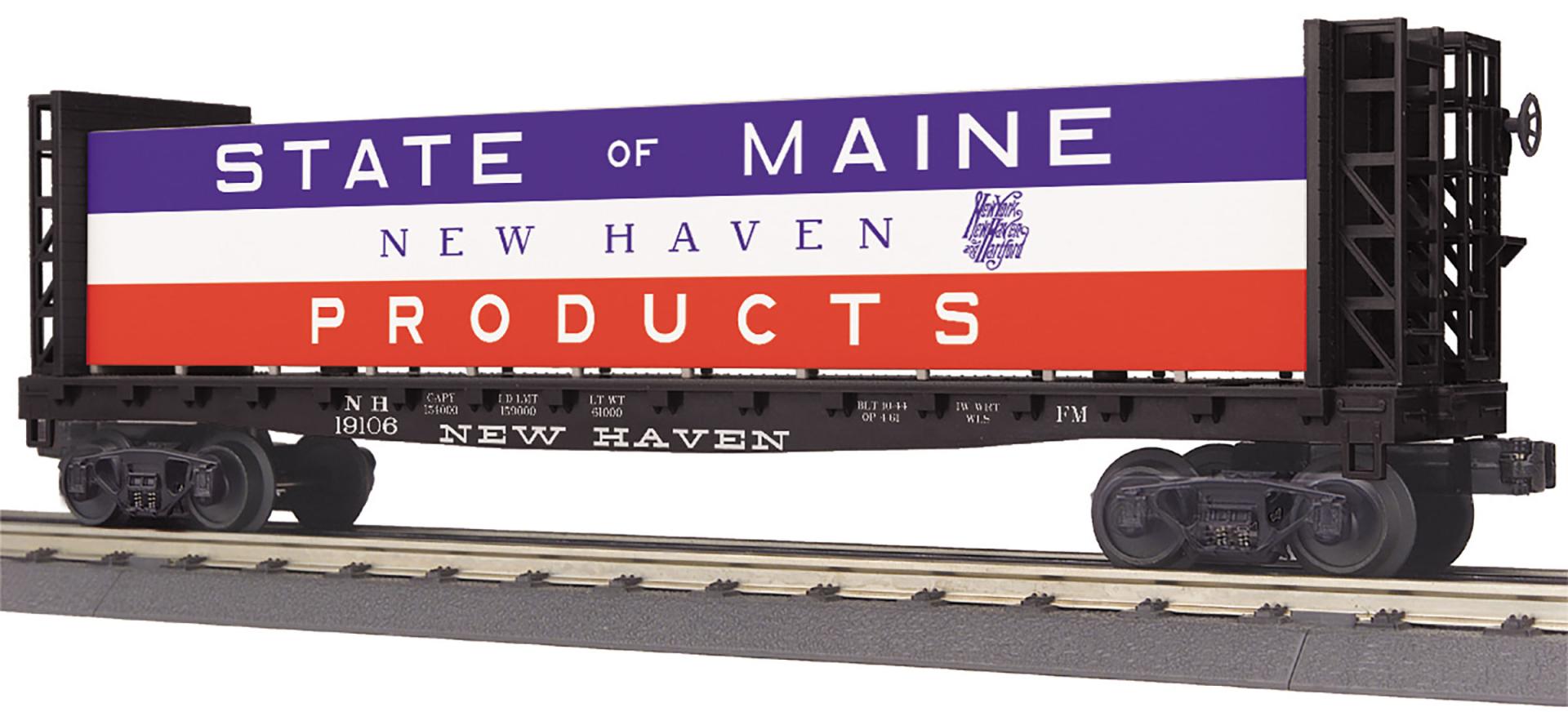State of Maine O Gauge RailKing Flat Car - w/Bulkheads & Lumber Load