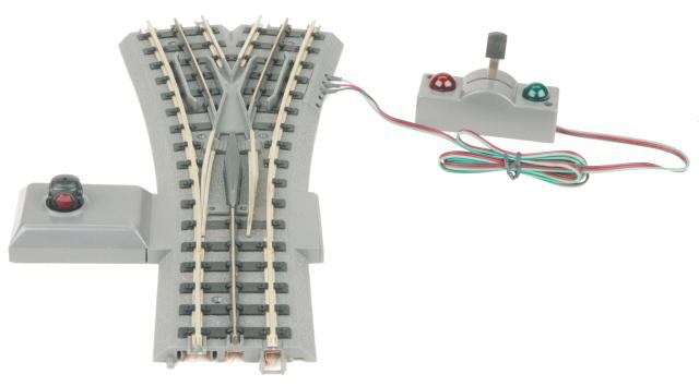 RealTrax switches feature the same durable construction as regular RealTrax sections and utilize long-lasting switch motors that provide precise throws every time. The reversible motor mechanism quickly snaps onto the other side of the switch if space is a problem. No disassembly of the switch is required! Lighted switch controllers allow you to throw a switch remotely from a distance, and lights on the controller indicate which direction the switch is thrown - green for straight and red for curved.